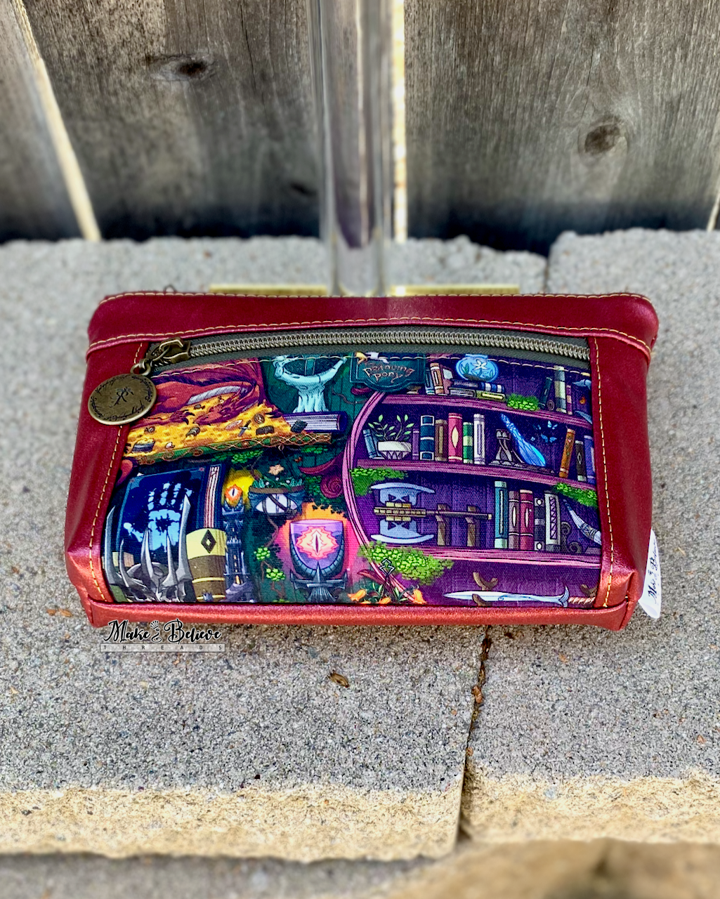 One Ring Bookshelf Shimmering Cranberry Pouch with Wristlet Strap